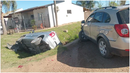 Presente en el lugar, personal policial, observa en la alcantarilla de dicha intersección un automóvil marca Citroën modelo Xara Picasso el cual circulaba de Sur a Norte sobre calle Almeida, conducido por un hombre de 61 años con domicilio en la provincia de Buenos Aires quien iba acompañado por una mujer; colisiona con otro automóvil marca Chevrolet, conducido por una mujer de 40 años de edad, quien circulaba por calle Tucumán sentido Este a Oeste, acompañada por su hija menor de edad.