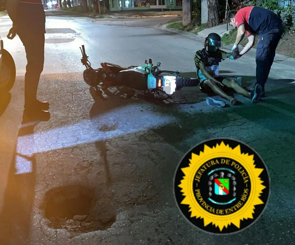 El motociclista intentó esquivar un pozo en la vía, pero como resultado de la maniobra, cayó violentamente sobre la cinta asfáltica. Tras el impacto, una ambulancia trasladó al herido al Hospital Urquiza, donde se le brindó atención médica. Se activó la intervención del Médico de Policía y también se convocó a la División Criminalística para realizar los peritajes correspondientes.