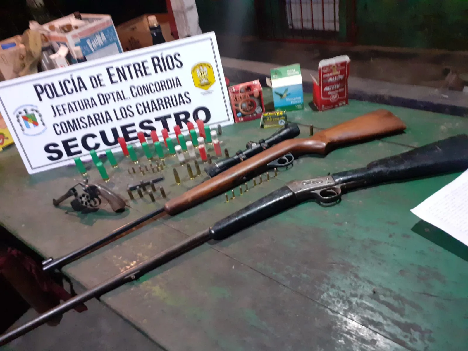 En la mañana de hoy, mediante una denuncia en contexto de violencia de género, personal policial de Comisaría de Los Charrúas; procedió a realizar un allanamiento en una finca ubicada en calle Virgen Del Luján al “Norte” de esa misma Localidad. En el lugar, los efectivos policiales secuestraron una escopeta calibre 16, una carabina calibre 22 con mira telescópica, un Revólver calibre 38.