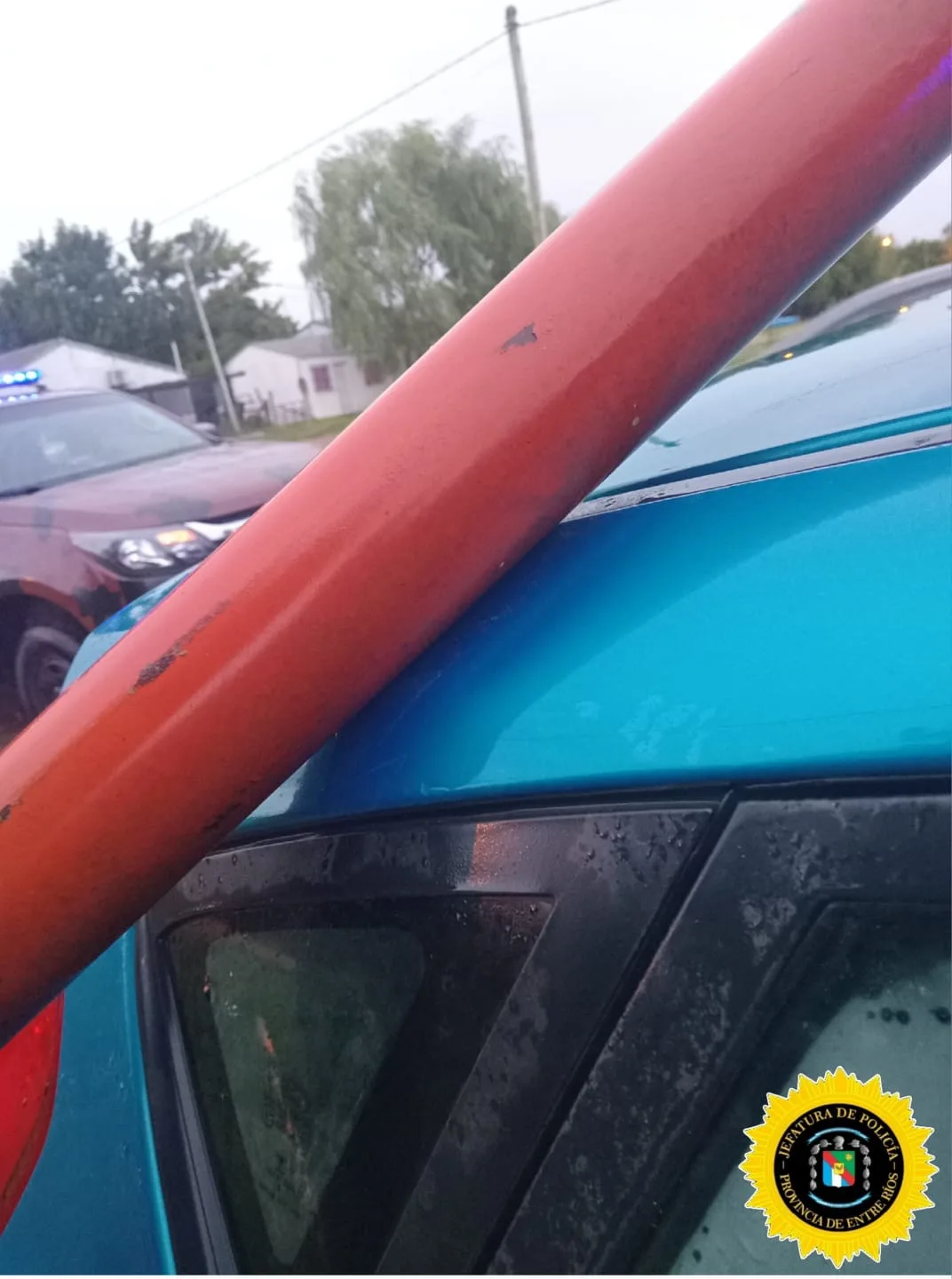 De acuerdo a lo indicado, al arribar al lugar el personal policial constató que el poste había caído sobre un automóvil Ford Fiesta que se encontraba estacionado en la vía pública.