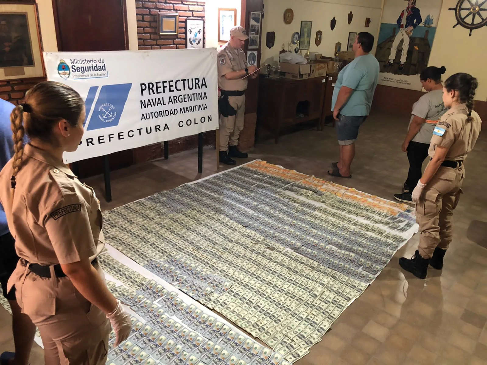Cuando estaban por llegar a la ribera, los efectivos consiguieron identificarlos y, tras invitarlos a que exhiban sus pertenencias, comprobaron que dentro de un bolso llevaban más de 80 mil dólares en efectivo.