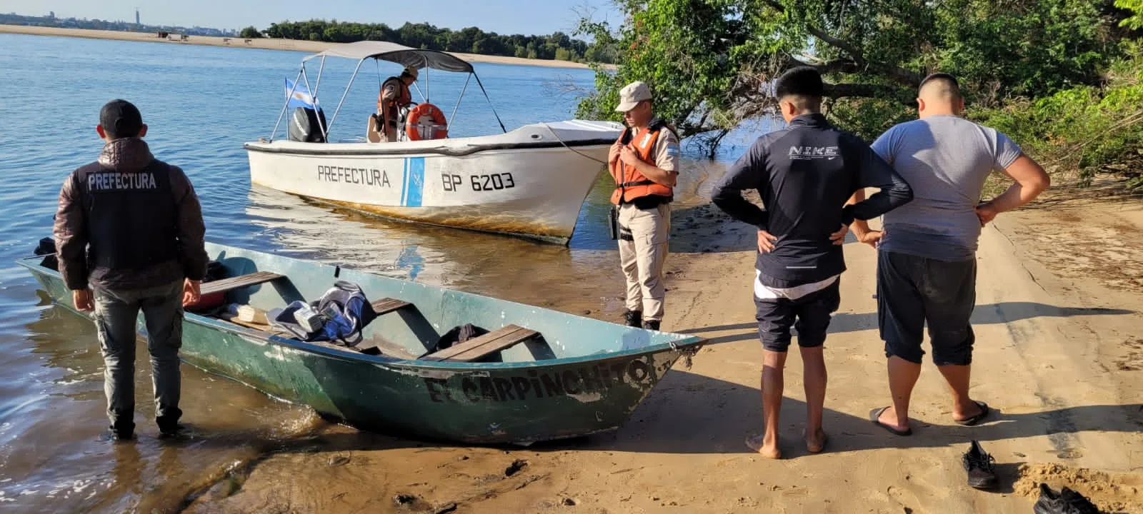 El hecho ocurrió cuando una patrulla de la Fuerza, que realizaba tareas de vigilancia y control de la frontera fluvial, detectó que dos hombres navegaban hacia la costa argentina, a la altura del kilómetro 212 del río Uruguay (proximidades Isla Caridad).