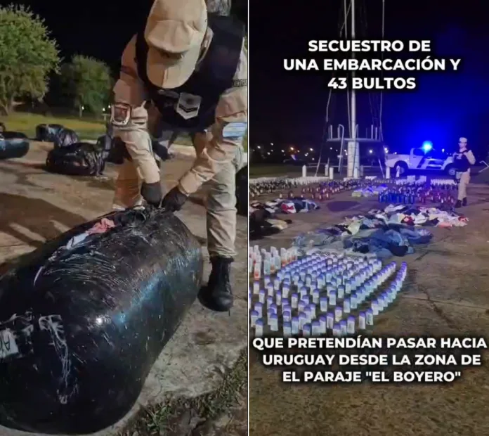 En un operativo de alto riesgo realizado en la zona de frontera, personal de la Prefectura Naval Argentina —Concordia— logró desbaratar una maniobra de contrabando valuada en más de 45 millones de pesos. El procedimiento se desarrolló en el kilómetro 328,6 del río Uruguay, en el paraje El Boyero, como parte de tareas conjuntas de control y prevención.