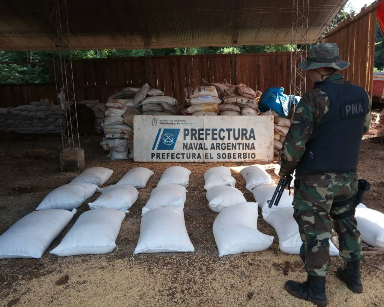 Efectivos de la Prefectura Naval Argentina decomisaron más de 10.000 kilogramos de soja y maíz, que pretendían ser exportados ilegalmente, desde la costa de la ciudad misionera de El Soberbio.