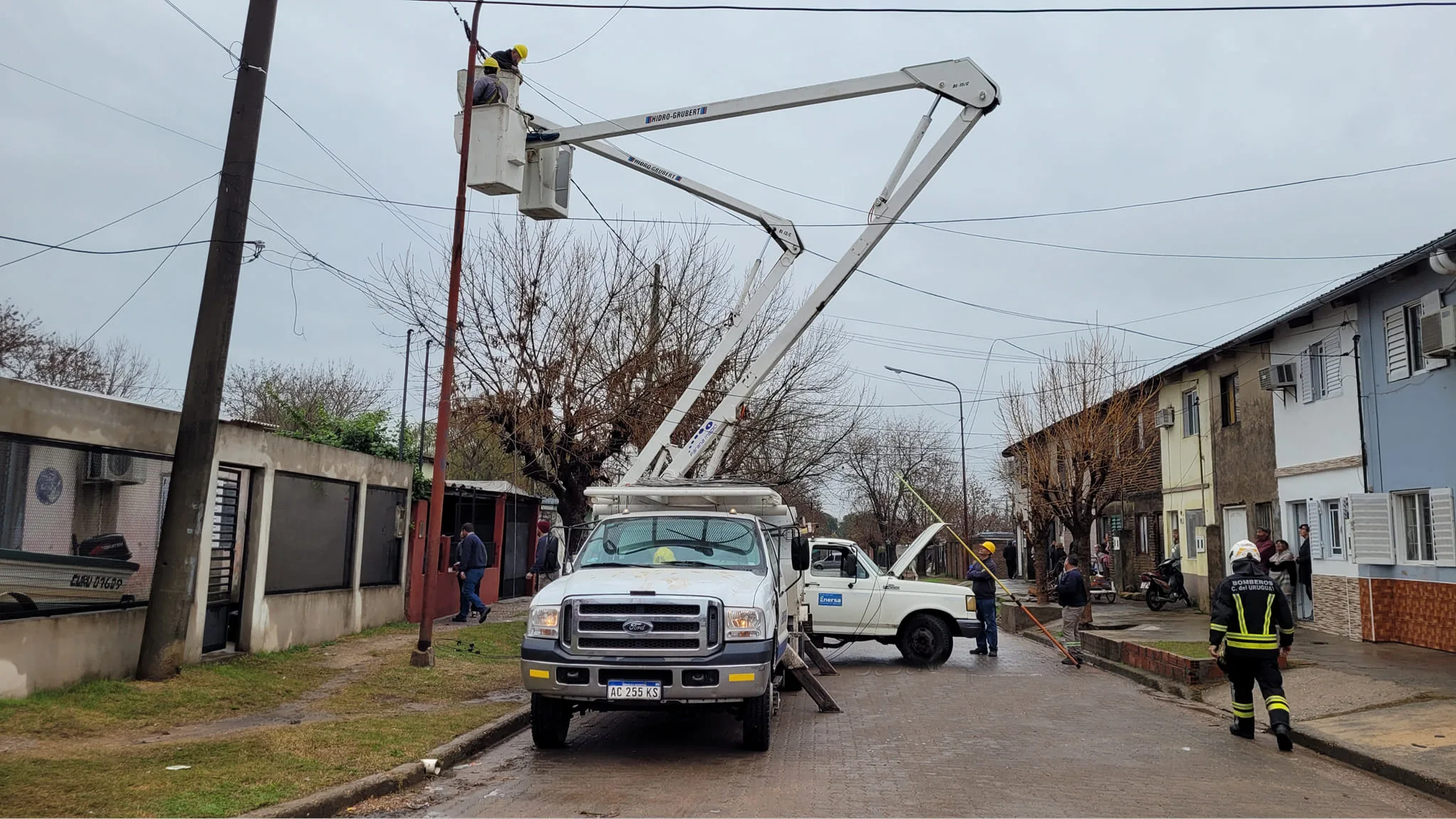 El hombre de la empresa de energía no aceptó ser rescatado de esa manera y se solicitó la intervención de otra unidad elevadora de ENERSA, dicha persona bajo a los pocos minutos.