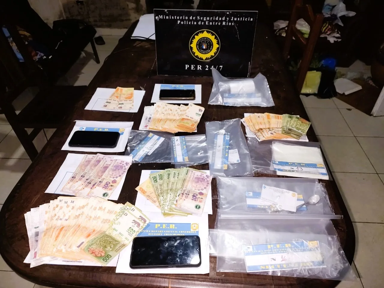 En la finca, se hallaron diversos elementos de interés, así como sustancia estupefaciente Clorhidrato de Cocaína, en dosis listas para su comercialización al menudeo; telefonía móvil; elementos de fraccionamiento y una gran suma de dinero en efectivo, en moneda de curso legal, que supera los $300.000.