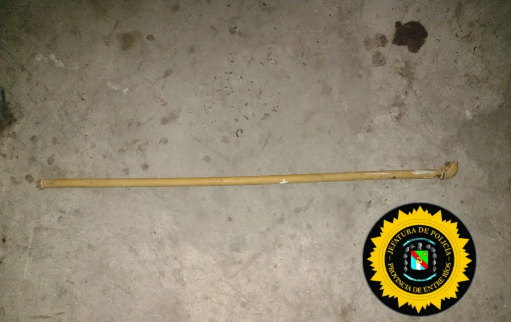 Durante la requisa, los uniformados secuestraron un arma de fabricación casera, consistente en un caño de gas de aproximadamente 1,20 metros, adaptado para funcionar como una “tumbera”.