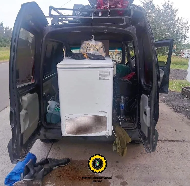 En el automóvil viajaban dos ciudadanos mayores de edad, domiciliados en Campana, Provincia de Buenos Aires, quienes transportaban en la caja del vehículo un freezer que contenía dos ciervos y dos chanchos faenados.
