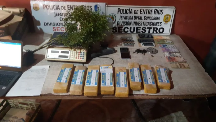 En la fecha personal de la División Investigaciones, con la colaboración de varias comisarías, División de Toxicología y gabinete Criminalístico diligenciaron siete Mandamientos emanados del juzgado de garantías.- Se allanaron siete viviendas en inmediaciones de calle Lieberman y los naranjos, como resultado de los procedimiento se actuó con el secuestro de: (01) juego de 4 llaves (3 con logo VW), (01) insignia VW, (02) cartuchos calibre .22, (03) teléfonos celulares, $ 28.970, (08)panes de cannabis sativa (compactada) (01) balde conteniendo picadura de cannabis sativa, (02) plantas de cannabis sativa (una 82 cm aprox y la otra 36 cm aprox), (01) balanza electrónica, (01) licuadora, (10) blíster de psicofármacos (clonazepan y diazepan), (01) rollo de bolsas tipo consorcio.