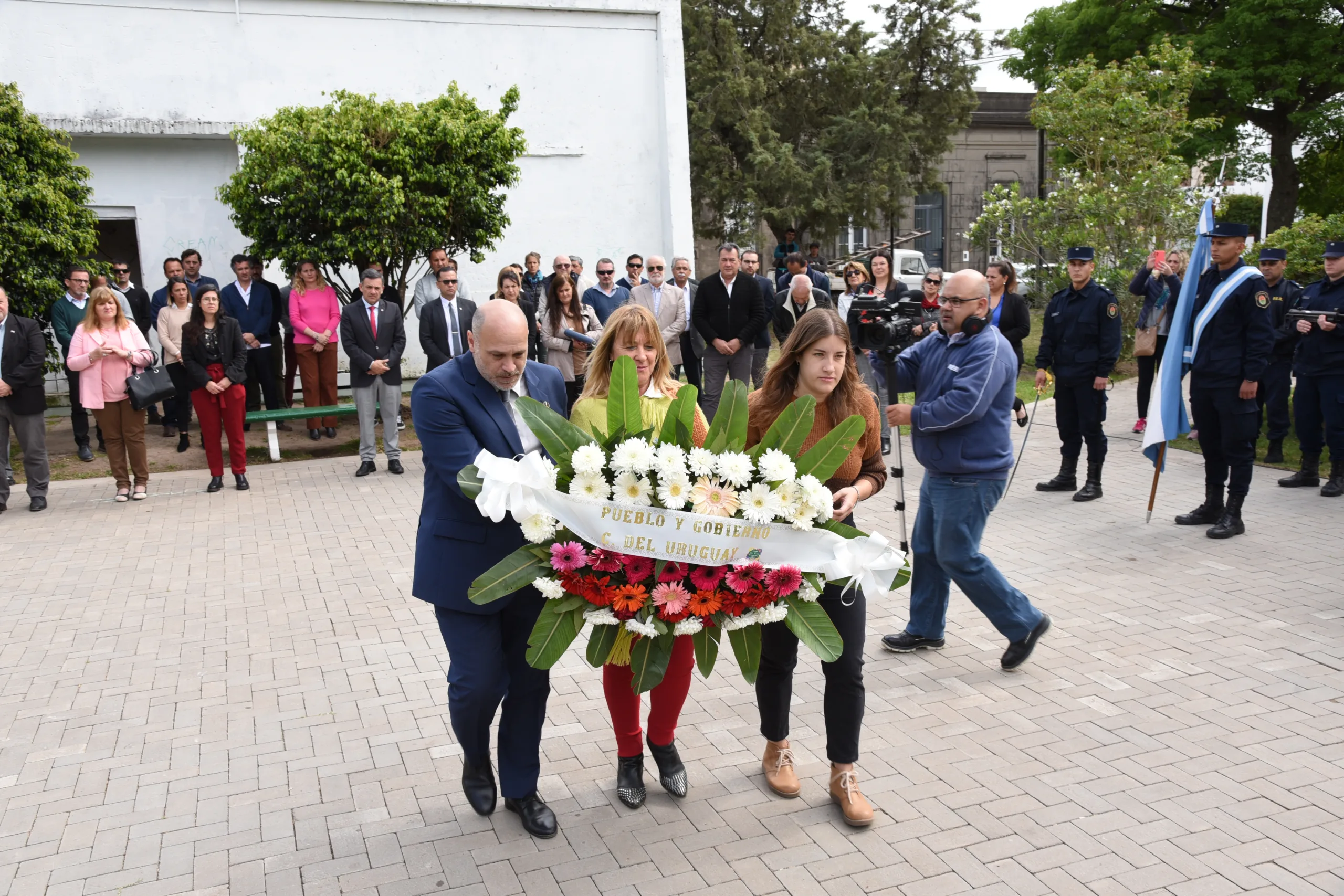 El intendente, Martín Oliva, encabezó el acto del cual también participaron abanderados y escoltas de establecimientos escolares, autoridades educativas de todos los niveles, el Centro Cultural Justo José de Urquiza, el Instituto Ramiriano de Estudios Históricos, concejales y autoridades diversas.