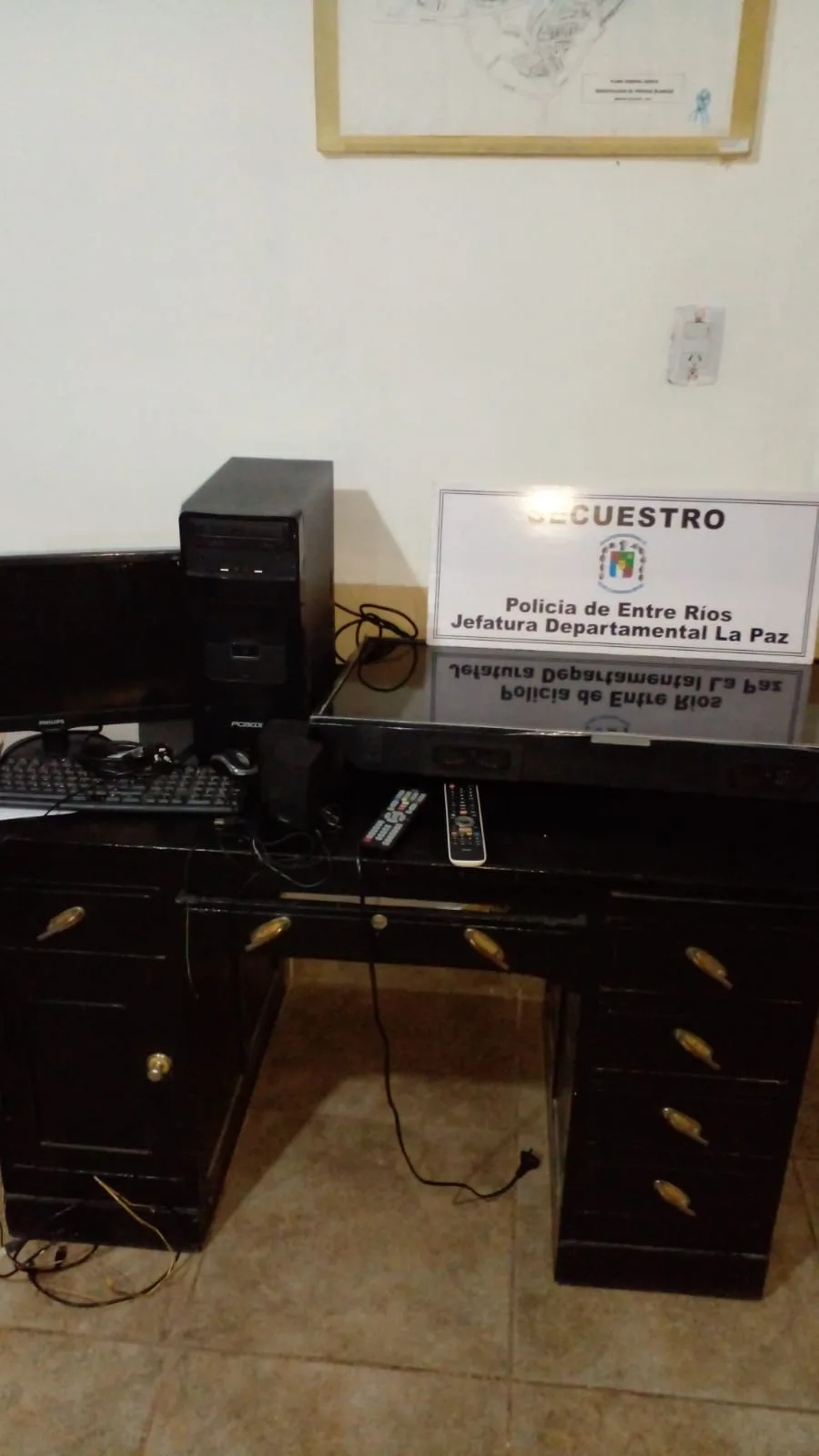 En relación a una Causa Iniciada en comisaria de Piedras Blancas, por el Delito de Robo en Perjuicio del Centro de Integración al Discapacitado, de esta ciudad, personal policial realizo un exhaustivo rastrillaje en la zona, donde siendo las 02:20 hs, se pudo hallar en una casa deshabitada, en la parte de atrás donde hay una abundante maleza, un Monitor de color negro, con su respectivo teclado, una PC de color negra, dos parlantes de color negro, un Televisor de 49 pulgadas con sus respectivos controles remotos, donde se procede al formal y preventivo secuestro