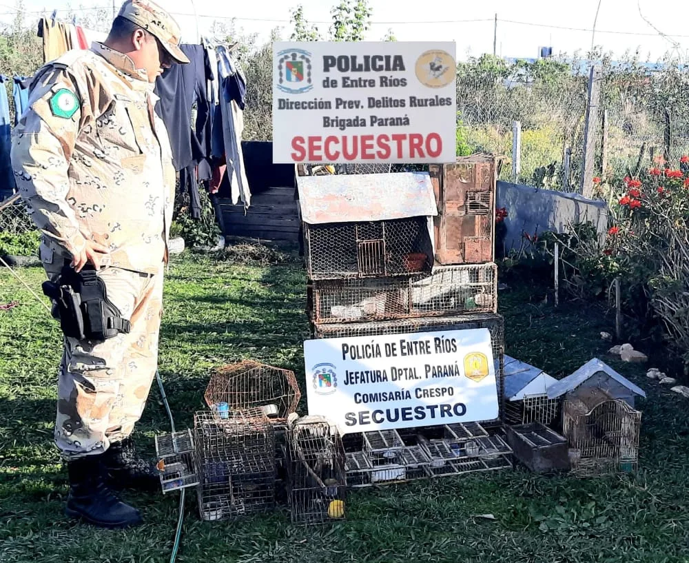 Rescatan aves en cautiverio mediante allanamiento en Crespo