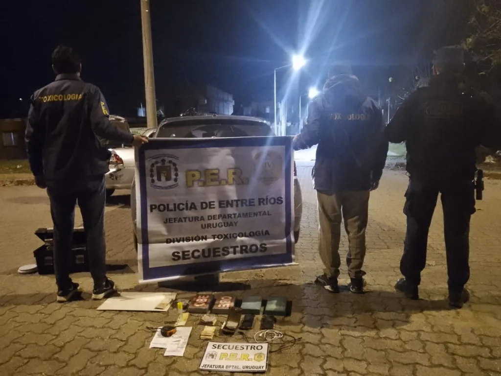 Allí se efectuó el secuestro de: cuatro envoltorios prensados de los conocido y denominados comúnmente “ladrillos o panes”, con total de más de 4 kg. cuya sustancia mediante test orientativo se corroboró que se trataría de clorhidrato de cocaína de máxima pureza, además de un envoltorio pequeño en nylon, comúnmente denominado “bochita”, que tenía en su poder uno de los detenidos. También se incautó una suma de dinero en efectivo de más de $115.000; telefonía celular y el vehículo en cuestión.