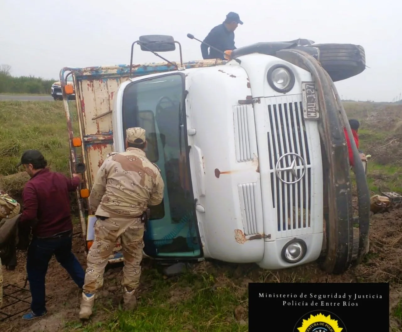 Este miércoles, alrededor del mediodía, se registró un vuelco de camión en la Ruta Nacional N.º 12, en el tramo correspondiente al Tercer Distrito. El camión, que circulaba en dirección Sur-Norte, transportaba veinticinco cabezas de ganado vacuno y era conducido por su propietario. Según declaraciones del conductor, el accidente se produjo debido a la rotura de un neumático, lo que le hizo perder el control del vehículo y provocar el vuelco.