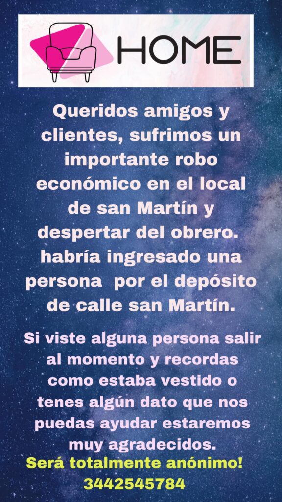 En un lamentable incidente, una mueblería local ha sido víctima de un robo significativo en su establecimiento ubicado en San Martín. Los propietarios y el personal del local están solicitando la colaboración de la comunidad para identificar al responsable y recuperar los bienes sustraídos.