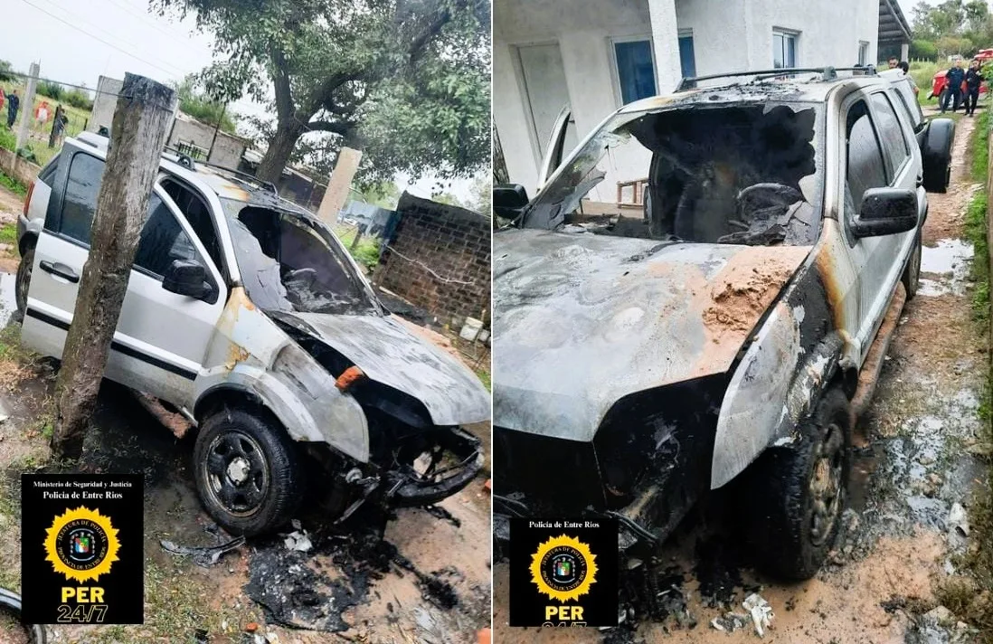 Uniformados de Rosario del Tala, inicio actuaciones a raíz de un llamado a la línea de emergencia, por un posible incendio de un automóvil, al llegar al lugar, constatan la veracidad de la comunicación.