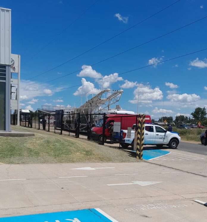 De acuerdo con lo que señalaron las personas que estaban en el lugar, el hombre se habría subido a la parte superior del acoplado cuando se encontraba elevada, y habría tocado por accidente uno de los cables de alta tensión, el más bajo, que cruzan por la colectora de la Ruta 14.