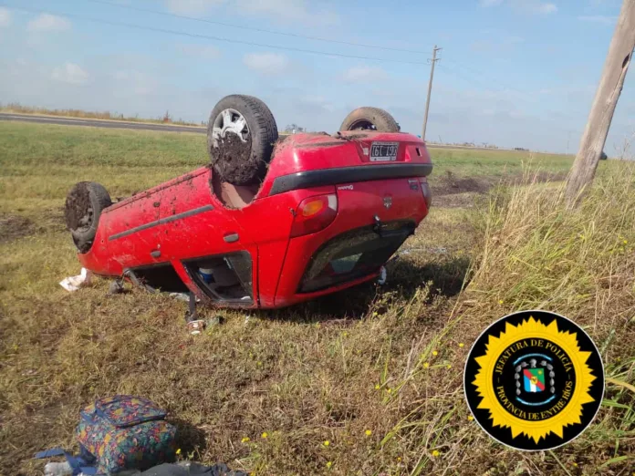 En la mañana de hoy, a las 09:30 horas, se registró un accidente de tránsito en el kilómetro 316 de la Ruta Nacional N°12, donde un automóvil Ford Fiesta volcó, dejando como saldo cinco personas heridas. El conductor, un hombre oriundo de la zona rural de la provincia de Santa Fe, viajaba acompañado por su familia en dirección a Villaguay. En el vehículo se encontraban también cuatro pasajeros, dos de ellos menores de edad.