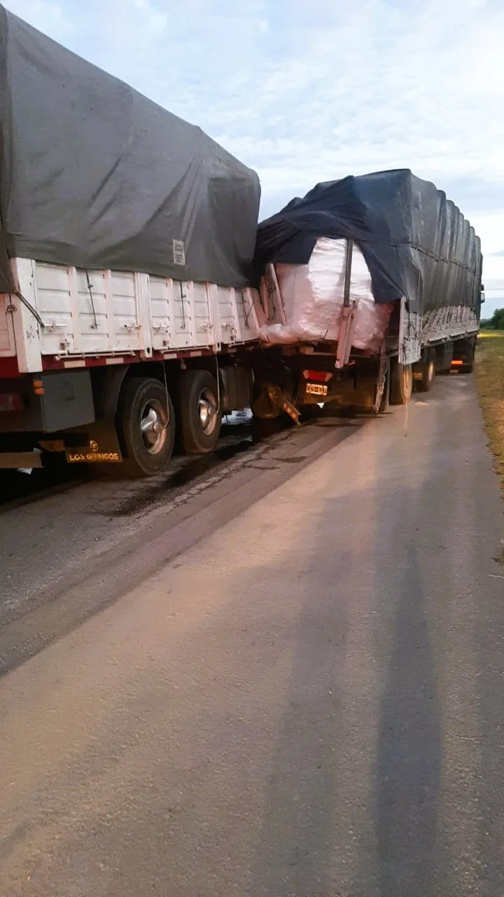 El incidente se produjo por una colisión por alcance en la que un Scania G380, conducido por un hombre de 36 años oriundo de Villa del Rosario, Entre Ríos, impactó contra la parte trasera de un camión Renault Premium 440, propiedad de la empresa Transporte Garay, que era manejado por un hombre de 44 años de Oberá, Misiones. Este último viajaba en dirección a Buenos Aires desde Entre Ríos. A pesar de la magnitud del accidente, afortunadamente no se registraron heridos.