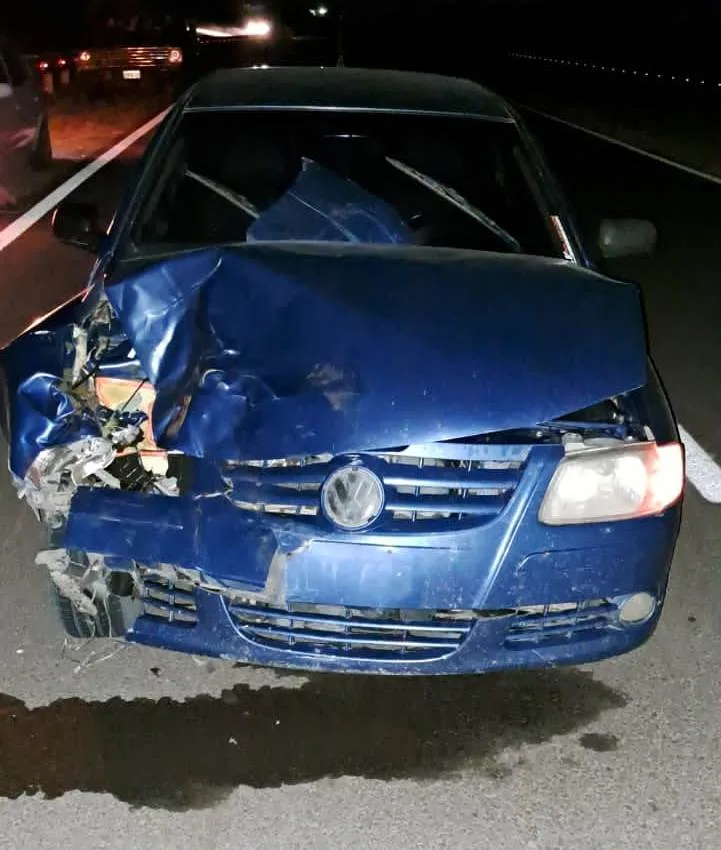Una vez en el lugar constatan que un automóvil marca Volkswagen Gol Power, color azul, conducido por un joven de 24 años de edad, domiciliado en la localidad antes mencionada, colisiono de frente con un animal vacuno, siendo una Ternera de unos 200 kg, pampa colorada que se encontraba sin vida sobre la banquina y el automóvil unos 70 metros mas adelante , el cual presentaba daños en la zona delantera del lado derecho, el conductor no presentaba lesiones, y manifestó que circulaba desde la ciudad de General Campos por la ruta para dirigirse hasta la ciudad de la Paz pero se encontró con varios animales sueltos, y a uno no logro esquivar y lo impacto.
