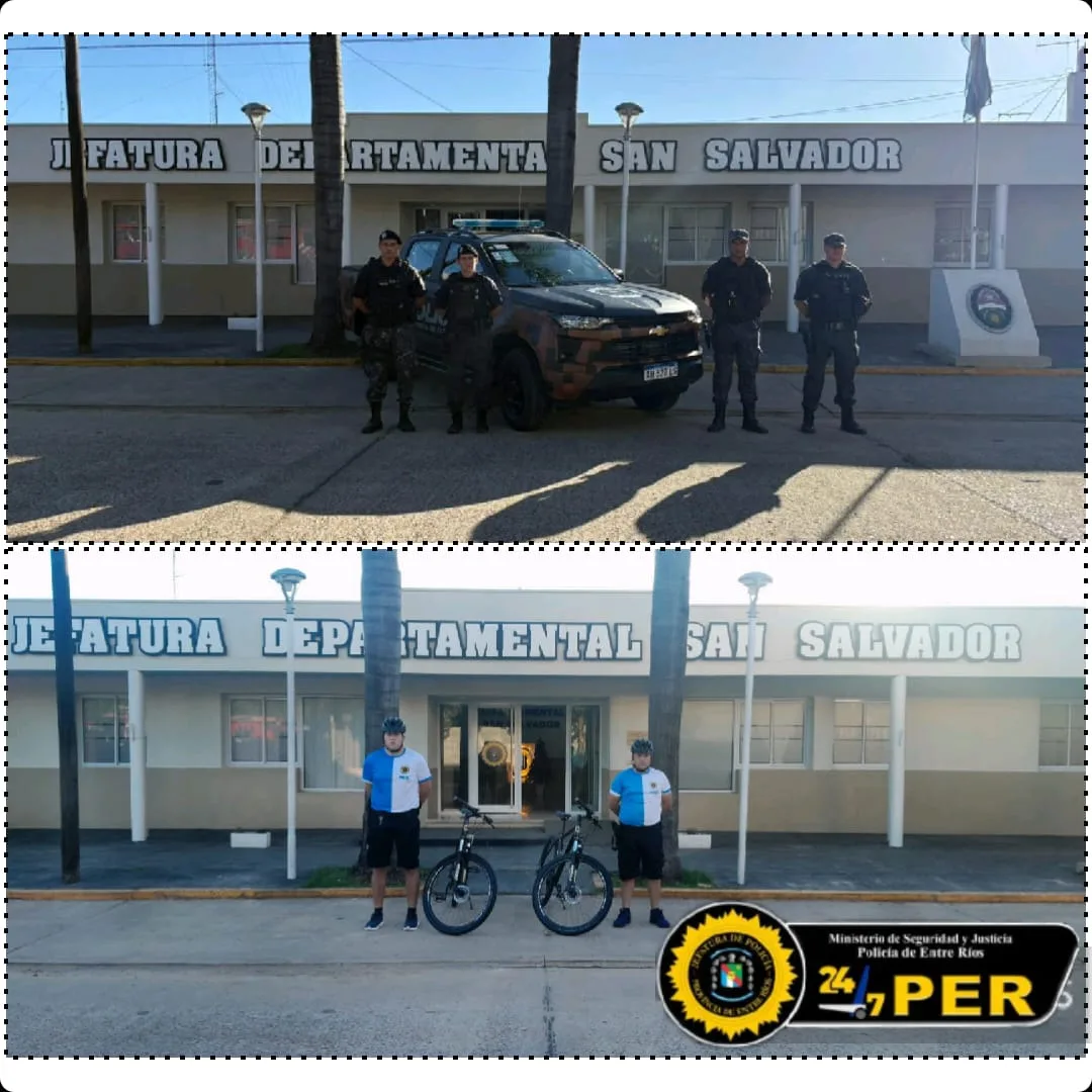 En ese marco, la Jefatura Departamental San Salvador recibió una camioneta tipo pick-up Chevrolet S-10, la cual será destinada al cumplimiento de tareas operativas y preventivas, quedando específicamente asignada a la Guardia Especial San Salvador (G.E.S.S.). Asimismo, se hizo entrega de dos bicicletas rodado 29 con su correspondiente equipamiento de protección, además de dos cascos balísticos y un escudo balístico, elementos que permitirán reforzar el accionar preventivo y táctico del personal policial.