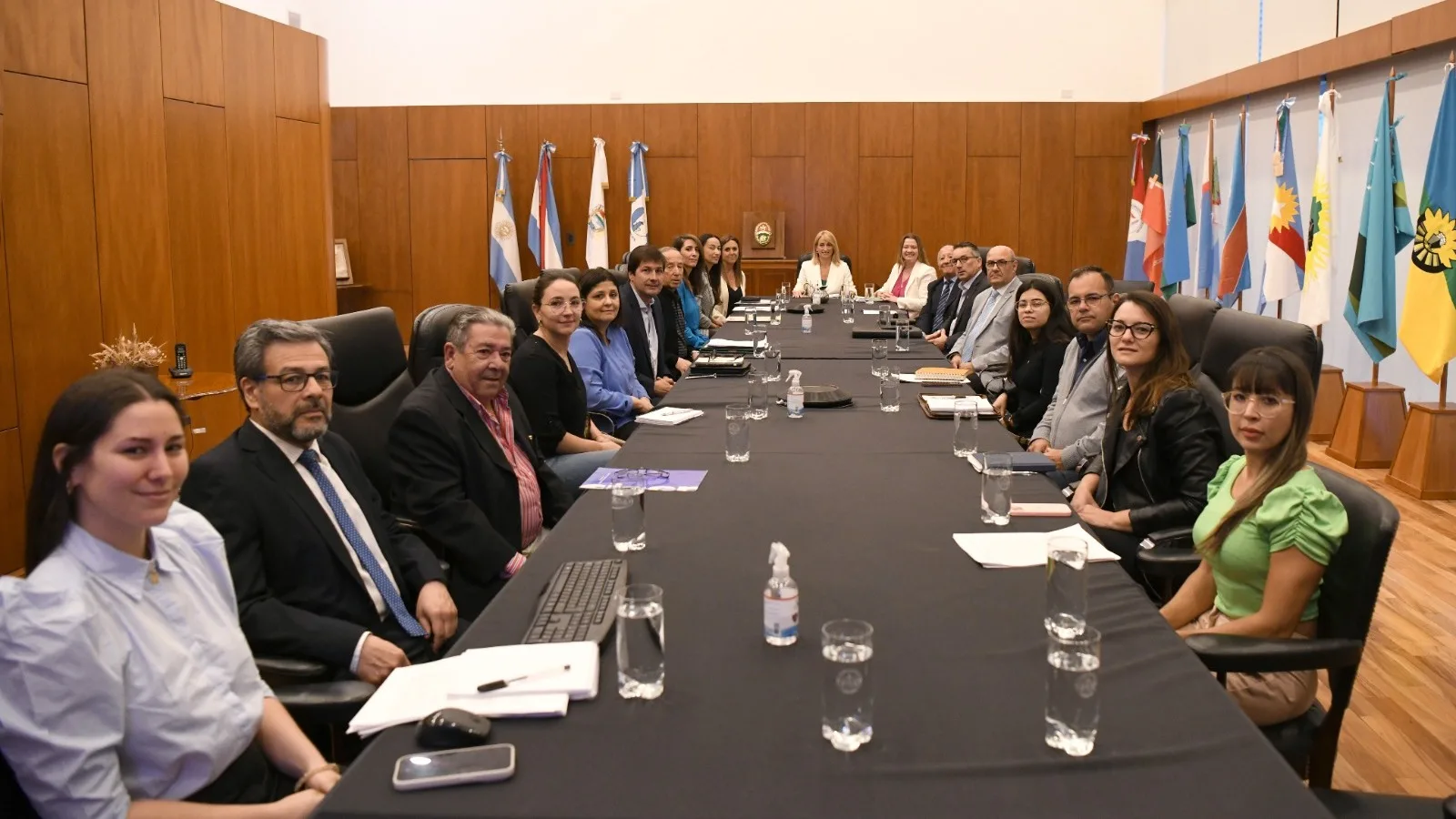 La vicepresidenta STJER, vocal Laura Mariana Soage, junto a la vocal Gisela Schumacher, presidieron el encuentro que tuvo lugar este jueves en el Salón de Acuerdos del edificio de Tribunales en Paraná.