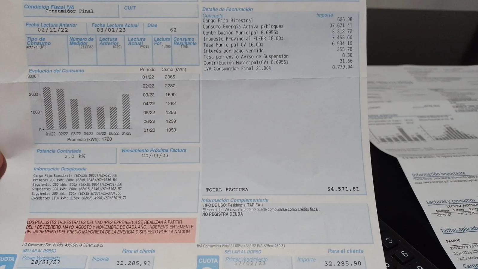 Establecer los vencimientos de las facturas en fechas donde la mayoría de la población haya cobrado sus salarios. Esto es a los efectos de no estar pagando recargos por atraso. - La represa sufre el injusto pago de tarifas paupérrimas y pagadas en pesos, esta puede generar toda la energía que necesita la provincia y se da ahora el caso de