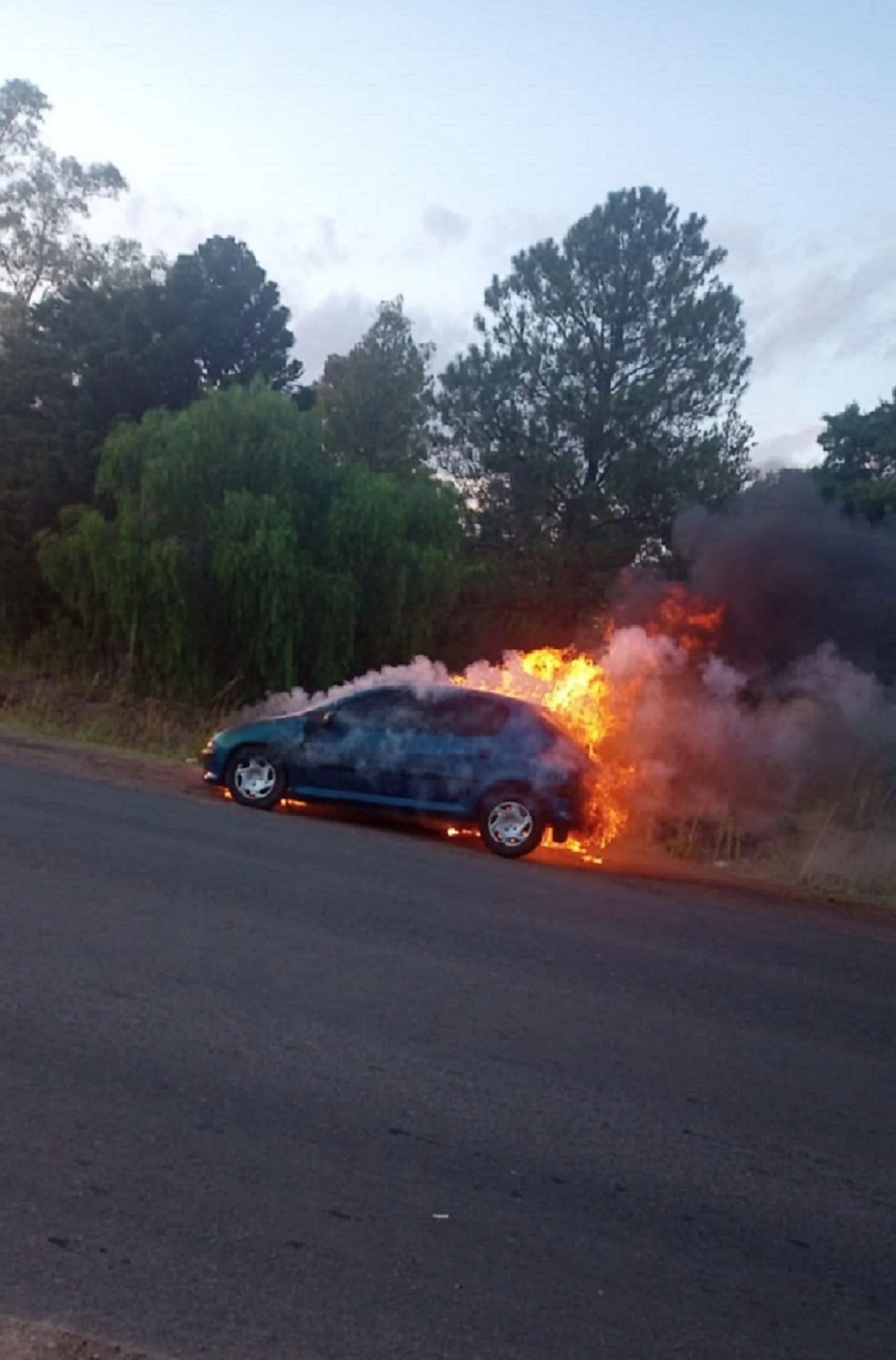 Siendo aproximadamente las 06:35 horas, del día de hoy, se toma conocimiento que en Ruta Provincial N.º 39, 1000 metros aproximadamente de estación de Servicio Shell, por causas a establecer habría un foco ígneo en automóvil Marca Peugeot 206, Modelo 2003, el cual habría sido conducido por un ciudadano de 32 años, domiciliado en la Provincia de Córdoba quien iba acompañado por otra persona de 34 años, domiciliado en Santa Fe, quienes lo hacían desde el Este hacia el Oeste, los mismos no sufrieron lesiones, solo fueron daños materiales, la ruta estuvo habilitada, en el lugar intervinieron bomberos zapadores y voluntarios.