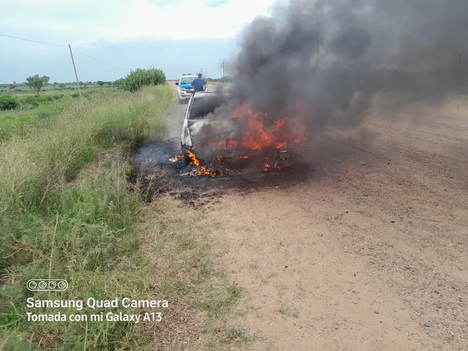 Según manifiesta el conductor, que circulaba de este a oeste, en ese instante, comenzó a salir humo del capo, motivo por el cual detuvo la marcha y descendió, se comenzó a prender fuego. Quemándose su totalidad, afortunadamente no hubo lesionados.