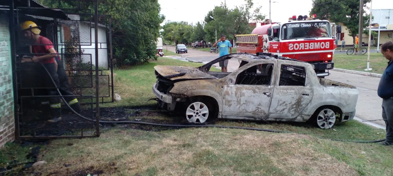 En las primeras horas de la tarde de este viernes 27 de enero, personal de Comisaria Santa elena y Bomberos Voluntarios de esa localidad, son alertados que, por motivos que se investigan, se había producido un incendio en la vivienda de un comerciante de 55 años domiciliado en calle Supremo Entrerriano de Barrio Parque de esa ciudad. En consecuencia, acuden al lugar logrando sofocar las llamas, no registrando personas lesionadas, solo pérdidas materiales. Dentro del garaje de la vivienda, había herramientas de trabajo, un kayak de material plástico, y una camioneta marca Renault modelo Oroch. Por otra parte, en el depósito, se encontraba una heladera exhibidora horizontal y otra vertical, las cuales estaban desenchufadas, una máquina de cortar fiambre, y un estante con elementos varios.