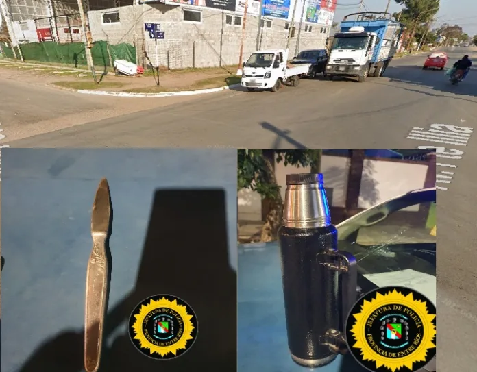 La rápida intervención policial resultó en la detención de las agresoras minutos después del hecho. Un móvil policial las interceptó en la esquina de Presidente Illia y Laprida, donde fueron encontradas todavía en posesión del cuchillo utilizado en el ataque y el termo sustraído.