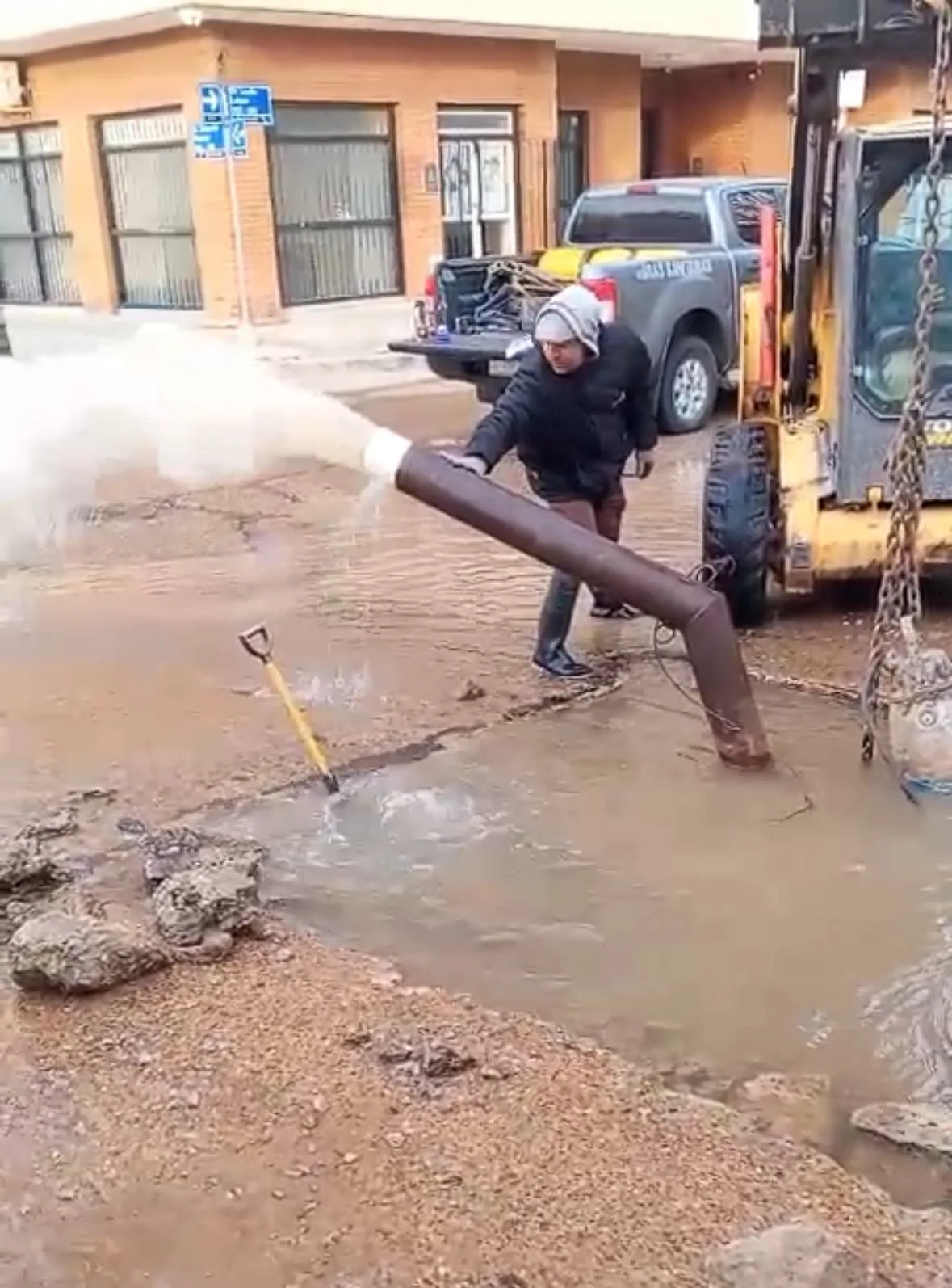 Este lunes, la Coordinación de Obras Sanitarias de la Municipalidad trabajó en la reparación de un caño madre que se rompió en la intersección de las calles Tibiletti y Lucilo López. El caño, hecho de hierro fundido, sufrió un orificio importante que requirió la sustitución de 4 metros de caño.
