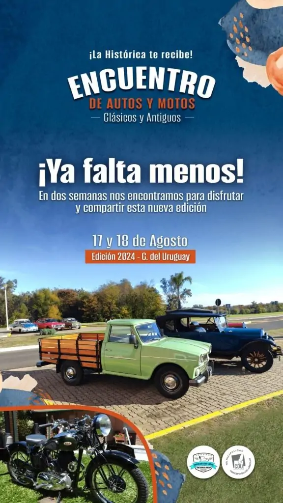 Organizado por la Asociación Amigos de Autos Clásicos y Antiguos, se llevará adelante la Edición 2024 del Encuentro denominado «La Histórica te recibe», donde se reúnen vehículos de nuestra ciudad y de otros puntos del país, sumado a la presencia de exponentes de la República Oriental del Uruguay.