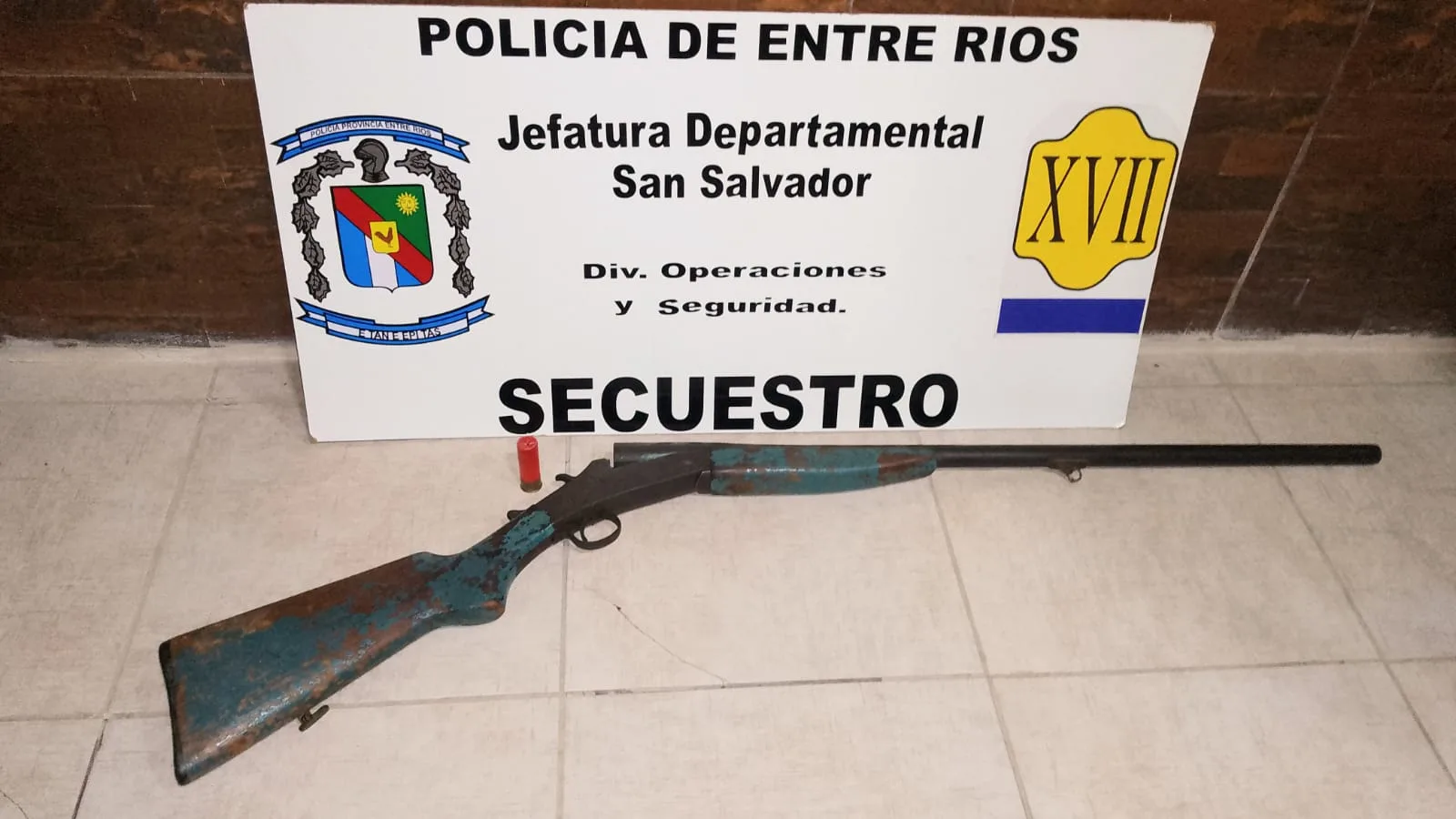 Se acercan con precaución hasta la persona, la cual usaba muletas en ambos brazos y se procede a quitarle el arma de fuego de sus manos rápidamente. Se lo identifica en el lugar, manifestando tener 87 años de edad y que buscaba a una persona que rondaría en el barrio y quería pegarle a menores, entre otras incoherencias, haciendo referencia que tenía intenciones de usar el arma de fuego. Se observa que el arma de fuego era UNA (01) ESCOPETA CAL. 16 CON CULATA, la que alojaba en recamara UN (01) CARTUCHO. Se procede a comunicar de inmediato a la Unidad Fiscal en turno, quien dispone se labren las actuaciones de estilo y que se practiquen los secuestros de elementos y aprehensión del ciudadano. Se procede al traslado del aprehendido a dependencias de la Jefatura de Policía local, luego de identificar correctamente a la persona, fue examinado por el galeno en turno, quien informa que el octogenario debido a su edad y condición de salud, no aconseja que permanezca alojado en esta departamental, por lo que se dispuso la inmediata libertad, quedando a disposición de la Unidad Fiscal San Salvador. –