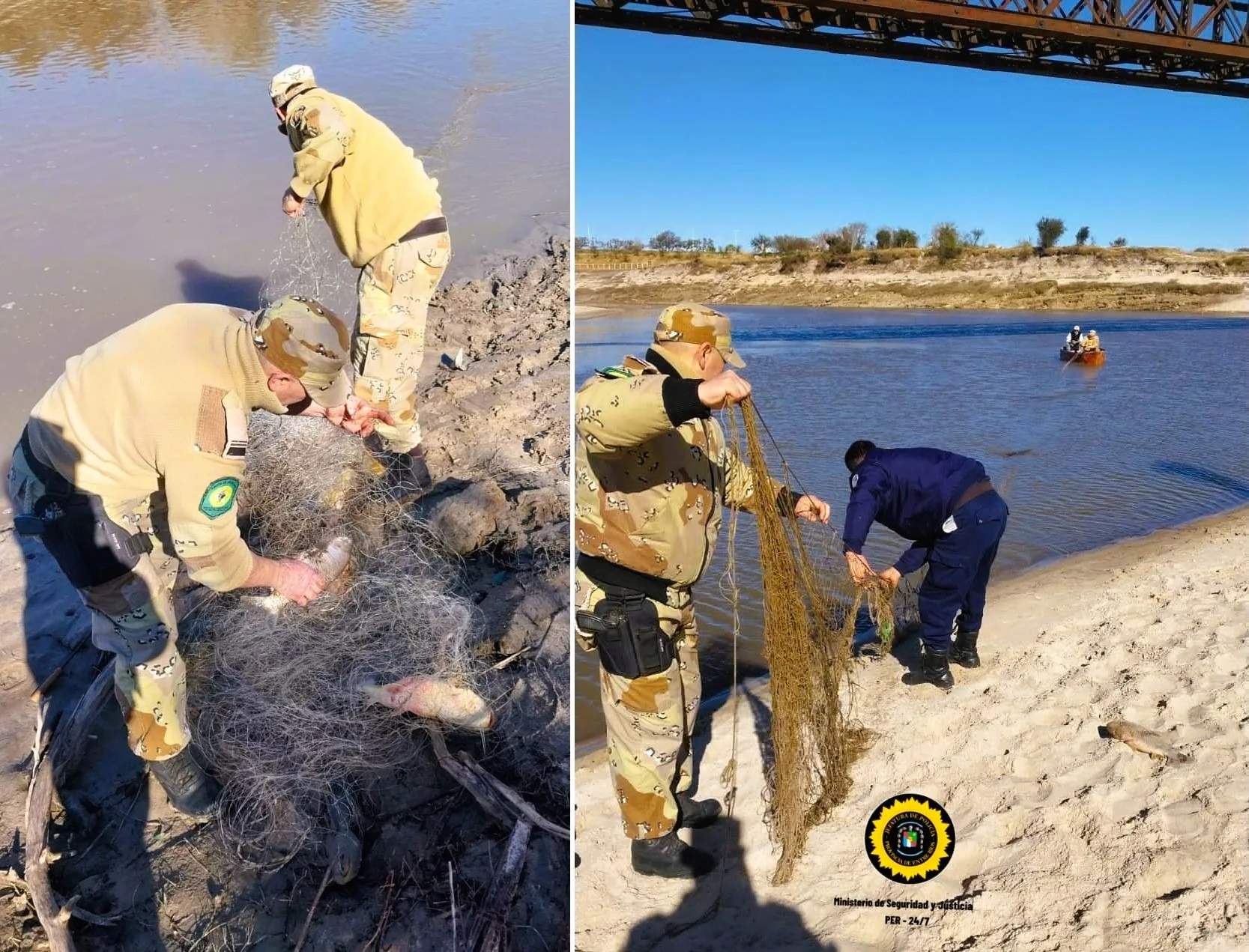 Los uniformados procedieron al secuestro de un total de ocho trasmallos de distintas medidas por infringir la Ley Provincial de Pesca N° 4892. Este tipo de artefactos están prohibidos para su uso en el Río Gualeguay y solo están permitidos para isleños y pescadores comerciales registrados con carnet en los ríos Paraná o Uruguay.