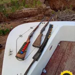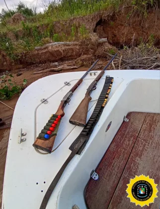 El procedimiento tuvo lugar este jueves, cuando personal policial patrullaba el río Paraná a la altura de la boya 490, frente a Puerto Gaboto (provincia de Santa Fe). Allí, los efectivos detectaron un campamento temporario y procedieron a identificar a dos hombres mayores de edad, oriundos de Gaboto y Maciel, quienes caminaban por la zona isleña con un carpincho abatido y las armas de fuego mencionadas.