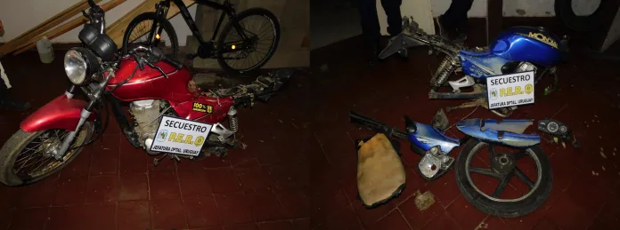 El primero de ellos, marca Mondial RH150 sin dominio colocado, resultó también contar con pedido de secuestro de fecha de 16 de Julio del corriente, en tanto el otro marca Ghiggeri 150 c.c fue incautado para establecer su propiedad y procedencia ya que no poseían documentación de titularidad, y presentaba colocadas partes de uno de las motos antes incautadas.
