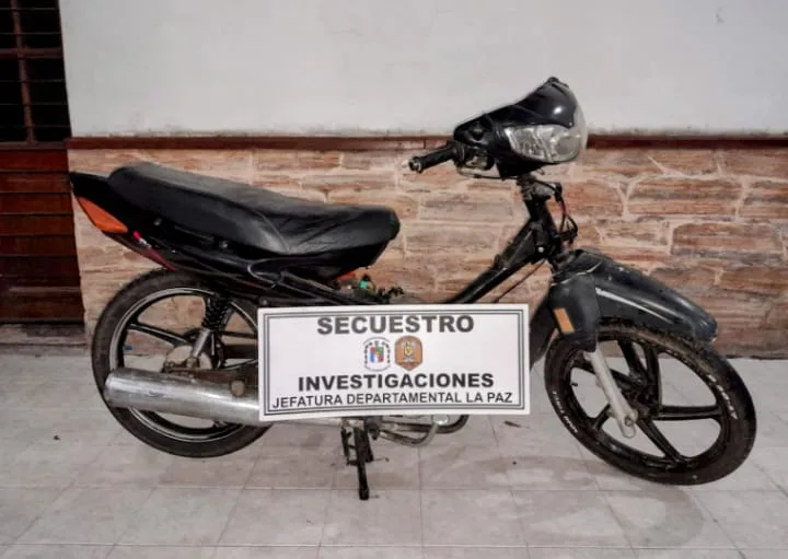En horas de la madrugada, efectivos de la División Investigaciones, interceptó en calle Gregoria Pérez y Tacuarí de esta ciudad, a un individuo de 22 años, quien remolcaba una motocicleta marca Corven modelo Mirage 110 cc, negra, a la que le faltaban varios plásticos, y no tenía Dominio. Al realizar el chequeo del rodado, los funcionarios pueden constatar que el número de motor y cuadro, se encontraban casi su totalidad suprimidos, tampoco contaba con documentación que acredite su propiedad.