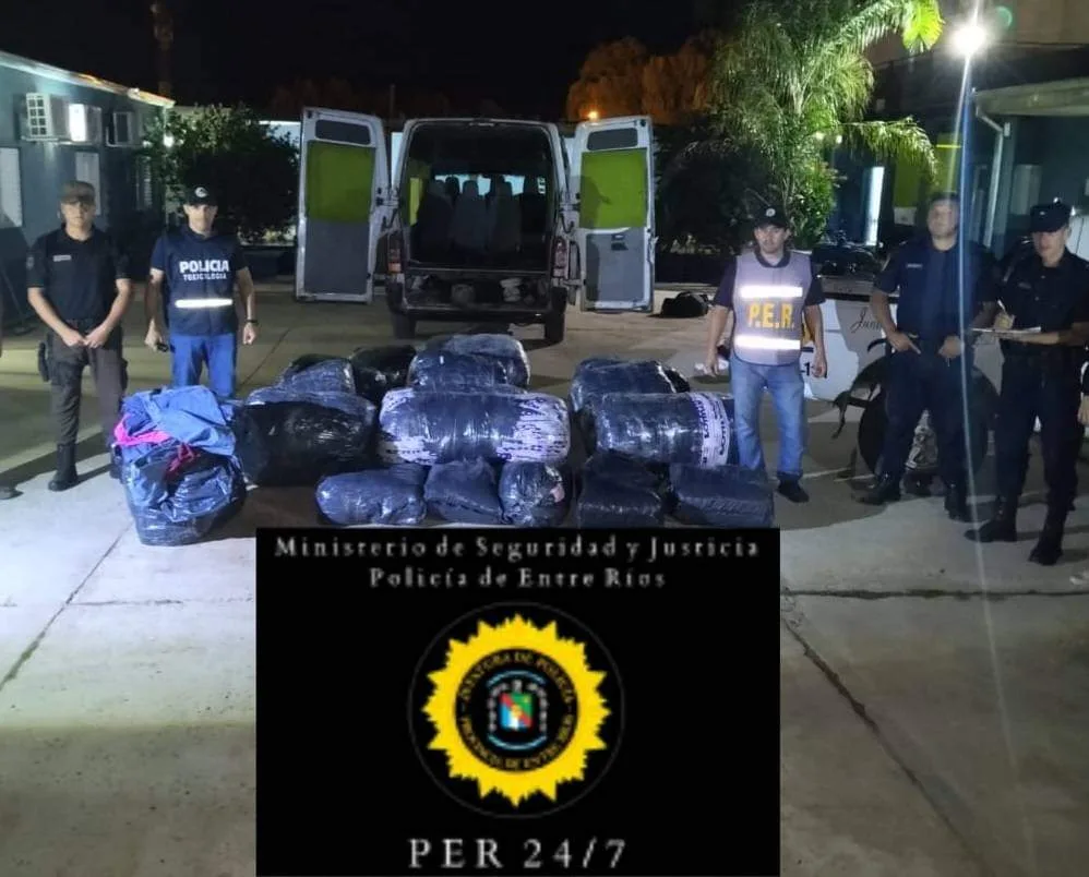 En hora 20:30 del día miércoles, personal de la Jefatura Departamental Islas en circunstancias de realizar recorrida jurisdiccional en acceso a villa Paranacito, más precisamente a la altura del arroyo Sagastume, detiene la marcha de un vehículo marca Renault, modelo Máster, conducida por un ciudadano, de 65 años, domiciliado la localidad de Ceibas, procediendo al control del mismo, observan en el interior del vehículo varios bultos de bolsas de color negro, de lo cual el conductor no puede justificar con documentación alguna y ante la sospecha de que podría tratarse de un hecho ilegal, se da intervención a la Fiscalía Federal de Gualeguaychú, quien dispuso que se actúe de acuerdo al Artículo 230 BIS del CPA, procediéndose en consecuencia constatando la cantidad de 18 bultos de bolsas de nylon negra recubiertas de cinta de embalar. Posteriormente se dio intervención al CAN antinarcóticos OLY, perteneciente a esta Jefatura arrojando resultado negativo en lo que respecta a la existencia de narcóticos. A continuación ante la presencia de los testigos se contabilizan 2.619 prendas de vestir (remeras, camperas, zapatillas, calzas, ect), así como también elementos de bazar, mercadería esta que fue formalmente secuestrada por Sup. Infracción ley de marcas y otros, correcta identificación del transportista, quedando todo a disposición de las fiscalía interviniente.-