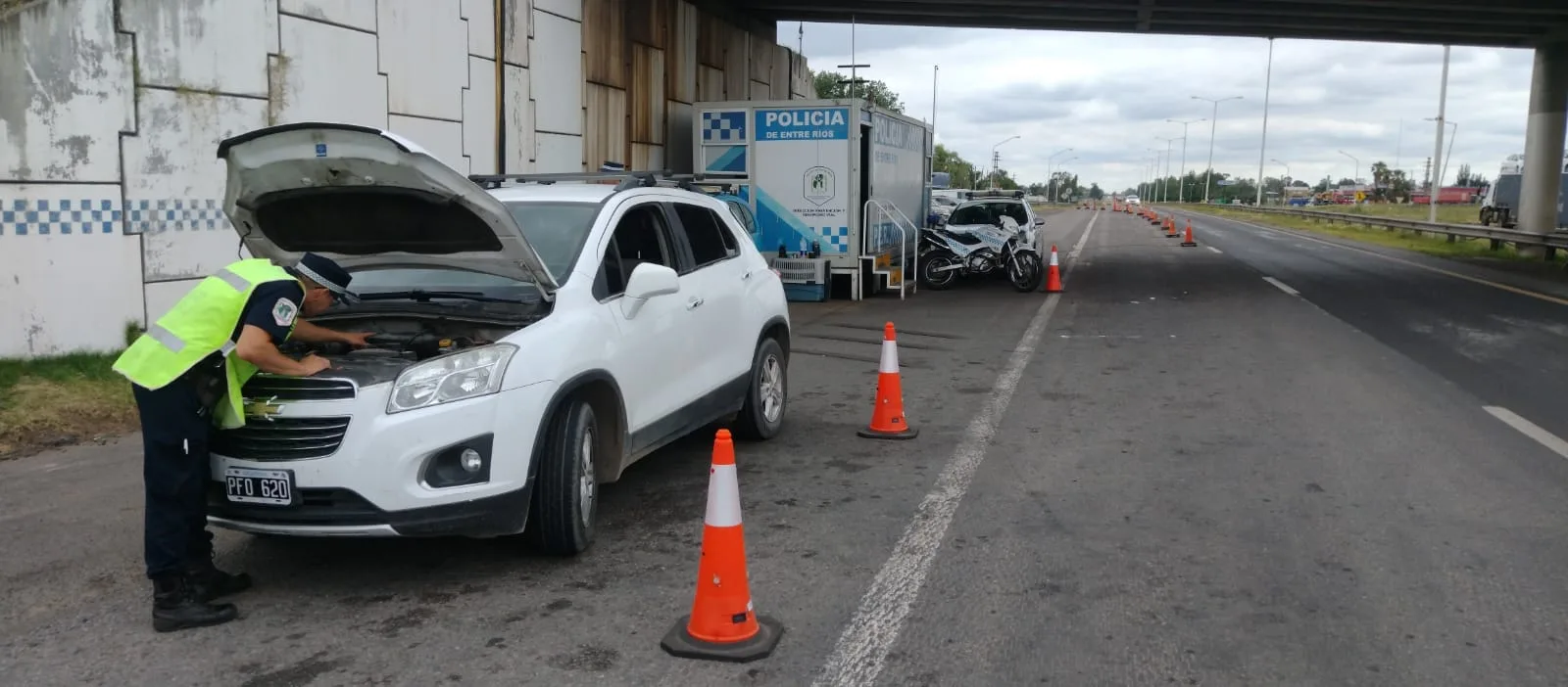 En horas de esta tarde, el personal policial destacado del Puesto Caminero Gualeguaychú de esta Dirección Prevención y Seguridad Vial, estando sobre Autovía Nacional 14 frente a dependencia abocado a realizar de manera ininterrumpida operativos de control vehicular e identificación de personas, logra detener la marcha de un vehículo marca CHEVROLET, modelo Trucker FWD LTZ, el cual era conducido por un hombre mayor de nacionalidad argentina, domiciliado en localidad de Concepción del Uruguay, provincia de Entre Ríos, a quien se le solicita la documentación legal para circular, entre la cual exhibe Cédula de Identificación Automotor, de la que se aprecia no se relaciona titular como así también evidentes signos de ser apócrifa, lo que es constatado al exponerla a Luz UV donde no se visualizan las medidas de seguridad con que que contar dicho documento. Por tal motivo, se procede a realizar un control más profundo en sistema informático DNRPA, donde se observa que el N° de Chasis se encuentra asociado a otro dominio sobre el que figura estado registral actual ROBADO de fecha noviembre de 2022. De esta manera se da inmediata comunicación al Juzgado Federal Gualeguaychú, quien dispone el formal secuestro del vehículo y documentación, como así también la correcta identificación del conductor, que de no mediar impedimento, recupere la libertad, quedando supeditado a la causa.