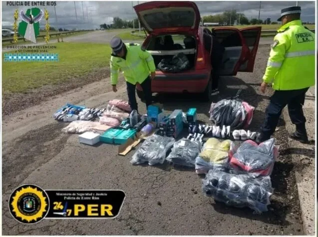 El procedimiento tuvo lugar en el Puesto Caminero Tala, ubicado estratégicamente en las rutas nacional N°12 y provincial N°6, donde se efectuó una exhaustiva inspección sobre un vehículo Citroën C3. Durante la revisión, se constató la presencia de varios bultos conteniendo indumentaria, elementos eléctricos y diversos artículos de bazar, careciendo de la documentación legal correspondiente.
