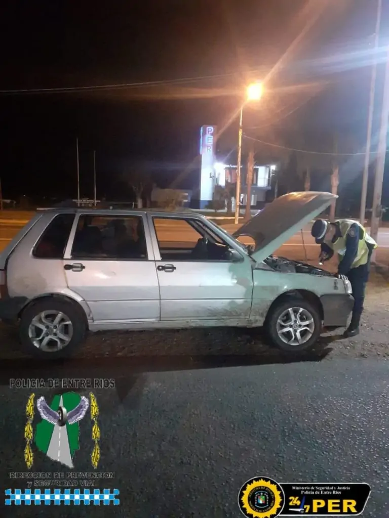 Durante un control vehicular en el Puesto Caminero Paso Cerrito, sobre la Ruta Nacional 14, la policía detuvo un automóvil Fiat Uno que ingresaba a la provincia. Al verificar la documentación y los números identificatorios del vehículo, se detectaron inconsistencias con los del motor. El rodado fue secuestrado, y se llevaron a cabo las actuaciones correspondientes para determinar su origen, mientras que el conductor fue identificado.