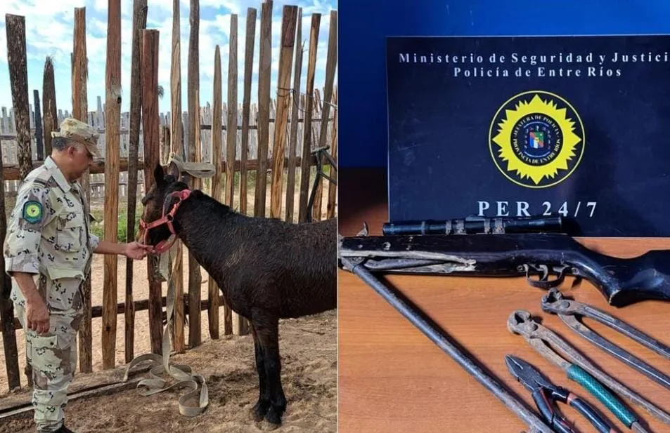 Los procedimientos, ejecutados en inmediaciones de las calles 2 de Abril y Nogueira, arrojaron resultados positivos. Entre los elementos incautados se encontraron media res ovina, cueros, nylones, pinzas y tijeras diversas, un cartucho calibre 9mm, riendas, cinchas y un par de botas amarillas identificadas en filmaciones como pertenecientes al autor del delito. Además, se secuestró un caballo zaino herrado, utilizado presumiblemente en el robo.