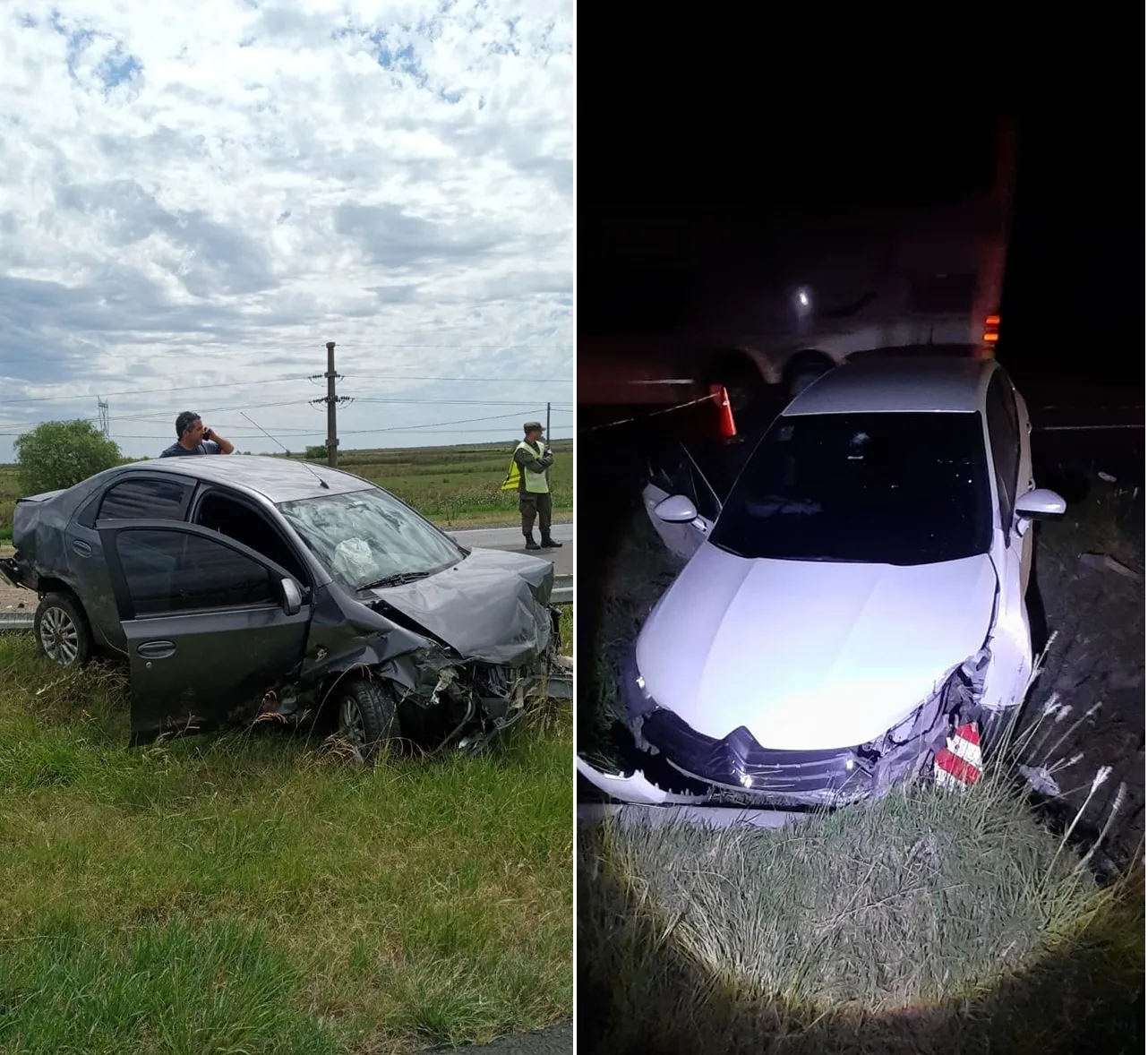 El segundo en horas de la tarde en el km 158, se produce el despisté de un vehículo Toyota Etios, gris oscuro, conducido por una persona de sexo masculino, de 46 años de edad, domiciliada en la localidad de Gualeguaychú.; acompañado de su novia de 44 años. El rodado circulaba en sentido sur – norte, el conductor habría perdido el control del rodado al realizar una maniobra, despistando en el cantero central donde colisiona contra el guardarraíl. Ambos ocupantes afortunadamente resultaron sin lesiones.