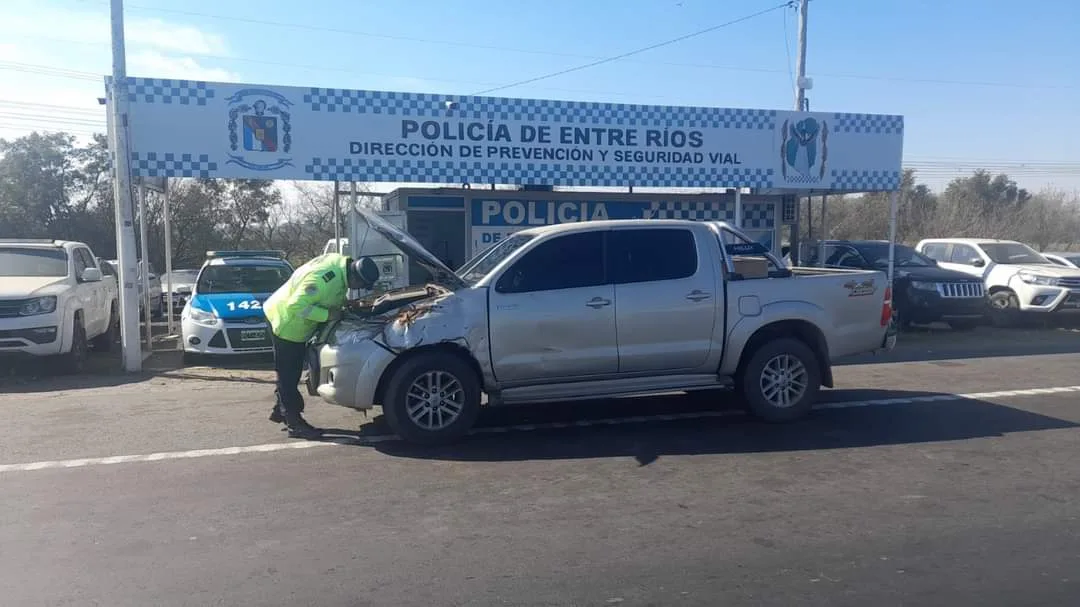 Mientras que en la mañana del sábado, personal de Puesto Caminero Brazo Largo, logra detener la marcha de una pick up marca TOYOTA, modelo Hilux, que también ingresaba a territorio entrerriano desde Buenos Aires y era conducido por un hombre mayor domiciliado en Gral Rodriguez, Provincia de Buenos Aires. Al solicitarle documentación para circular exhibe Cédula Automotor apócrifa, por lo cual se procede a realizar un control minucioso sobre los numeros estampados en el rodados, destacando que corresponden a otro dominio de la misma marca y modelo sobre la cual pesa PEDIDO DE SECUESTRO desde febrero de este año.
