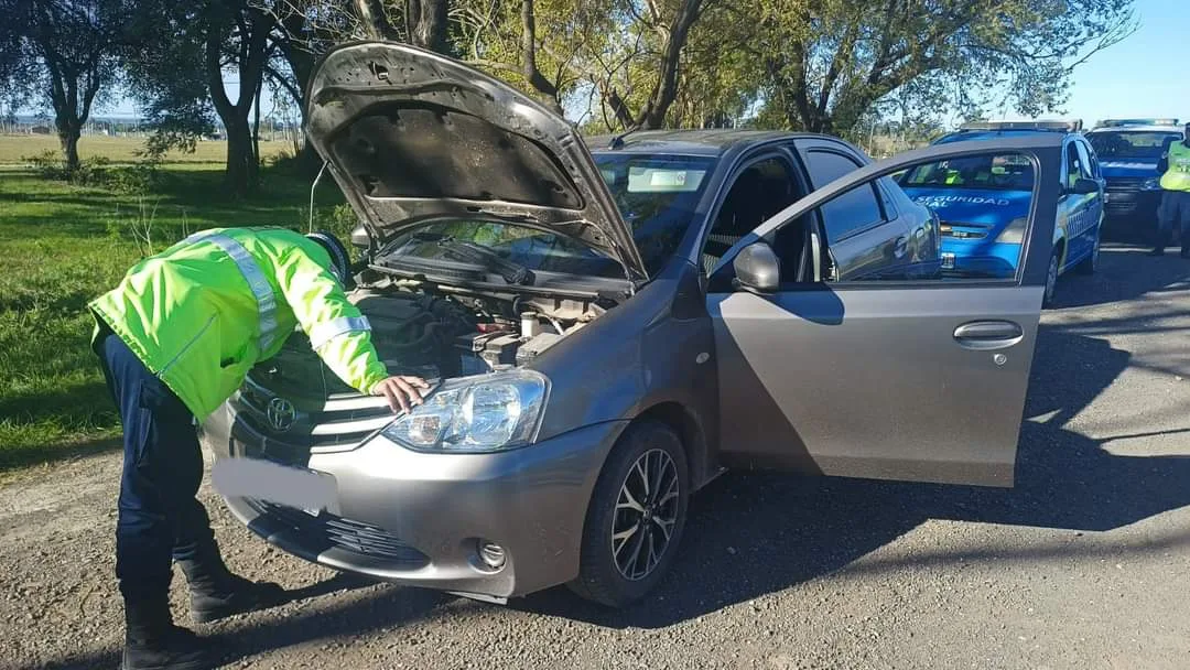 En cuanto en la tarde del lunes, personal de los Puestos Camineros Túnel y Viale, en operativo móvil en conjunto sobre RN 18 km 16, detienen la marcha de un vehículo TOYOTA, modelo Ethios, cuyo conductor posee Licencia de la localidad de Garupá, Provincia de Misiones. Controlando la documentación para circular, se observan en la Cedula Automotor y chapas patentes signos de ser apócrifas. Además se corroboró adulteracion en el acuñado de los números de chasis y motor.