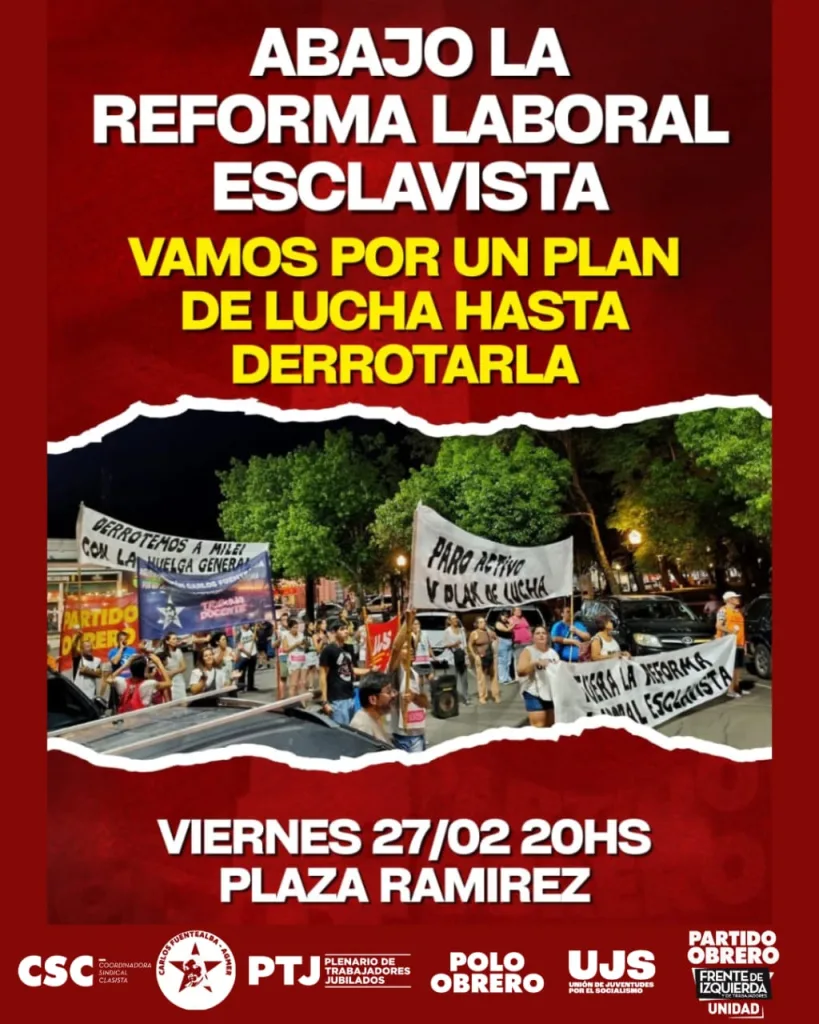 En Concepción del Uruguay, la concentración está prevista para las 20 horas en Plaza Ramírez. Desde la organización llamaron a participar a trabajadores ocupados y desocupados, jóvenes, jubilados y a distintos sectores populares para manifestarse contra lo que consideran una ofensiva sobre los derechos laborales, el salario y las condiciones de trabajo.