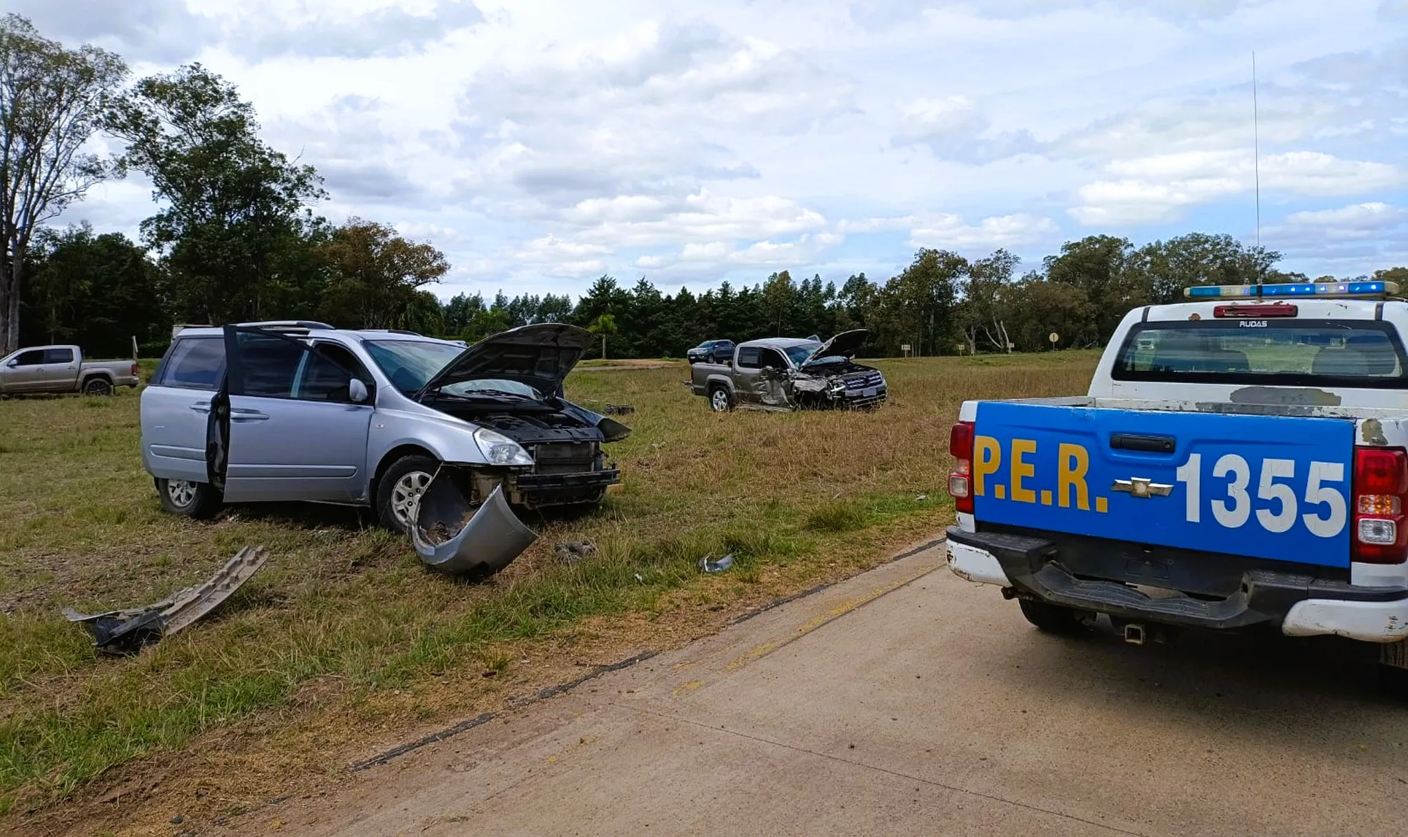 En la jornada de hoy, a las 12:00 horas, se registró un siniestro vial en la Ruta Nacional N° 14, Km N° 292, en la rotonda de acceso a Colonia La Paz. El accidente ocurrió cuando una camioneta Volkswagen Amarok, conducida por un adulto, colisionó contra un vehículo Kia Carnival, que transportaba a cinco ocupantes.