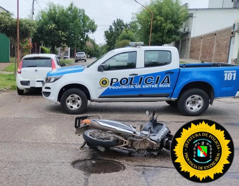 Como consecuencia del choque, la motociclista fue asistida en el lugar y posteriormente derivada al Hospital para su evaluación.