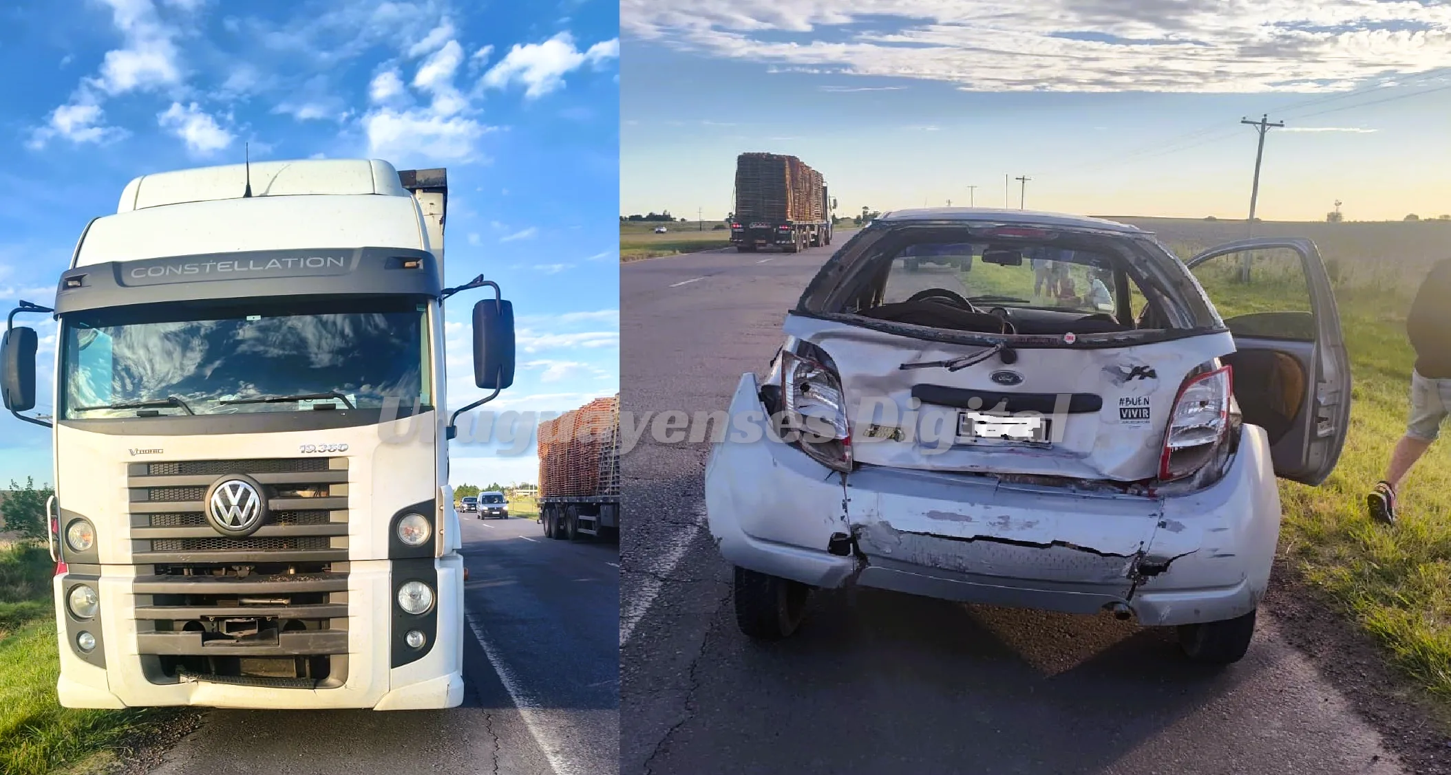 Alrededor de las 19:00 horas de ayer, personal de la Comisaría Séptima de Gualeguaychú fue alertado sobre un siniestro vial ocurrido en la Ruta Nacional 14, a la altura del kilómetro 51. Al arribar al lugar, los efectivos encontraron un camión marca Volkswagen que se desplazaba en dirección Norte-Sur, proveniente de Brasil y con destino a la provincia de Buenos Aires. El conductor, un hombre de edad avanzada, impactó por la parte trasera contra un vehículo marca Ford Ka.